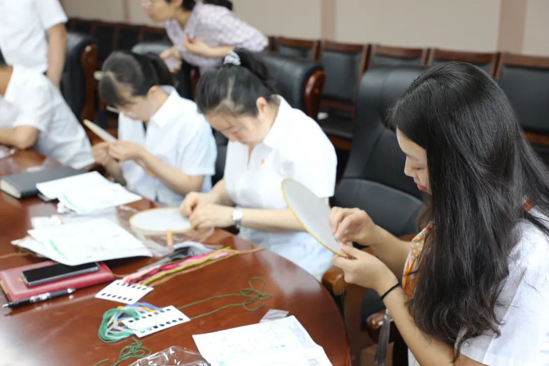 全体党员共同学习了党史学习教育大纲,观看了《家风》专题教育片。随后,大家各展所长,或是刺绣、或是绘画,将团扇上印制的松、菊、梅、兰、荷等象征高洁品质和廉洁奉公的图案再加工,在一针一线、一笔一划中感悟廉洁文化的内涵,不断提升自身的道德品质。最后,全体党员走进陕西省家风馆进行参观学