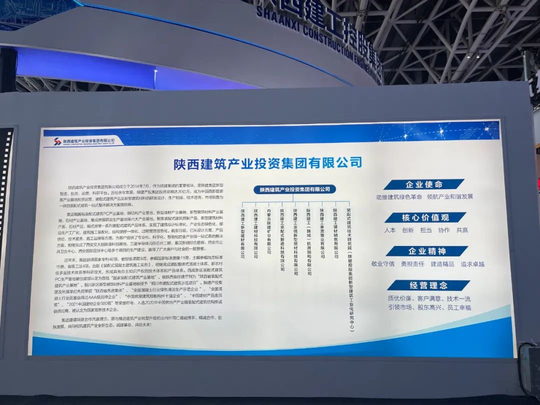 近年来,集团获得国家专利40项、省部级课题9项,参编国家标准图集11册,主编参编地方标准15册,省级工法4项,出版《装配式混凝土建筑施工实务》,相继完成装配整体式混凝土体系、新农村低多层技术体系等科研攻关,形成具有自主知识产权的技术体系和产品体系。集团相继完成了西安交大创新港科创基地、三星半导体闪存芯片二期、秦汉新城综合管廊、西安市公共卫生中心、西安国际足球中心等多个项目的生产建设,赢得了广大客户与社会的一致赞誉。欢迎社会各界丝博会期间参观指导。地址:西安国际会展中心B6馆 陕建集团T5展区