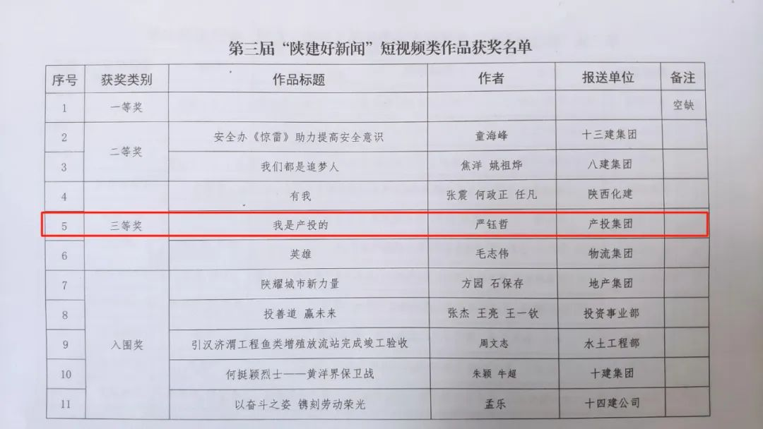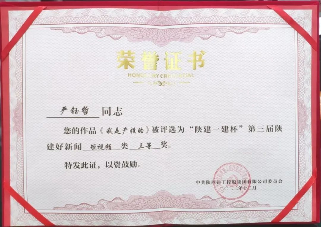 12月13日,2023年度《陕西建筑报》发行工作暨表彰大会在西安召开,陕建产投集团报送的《我是产投的》被授予第三届“陕建好新闻”短视频类三等奖。投资集团
