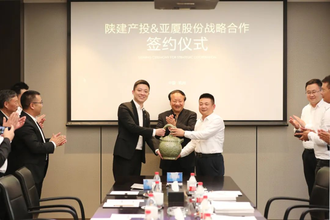 5月9日,陕西建筑产业投资集团与亚厦股份签署战略合作框架协议。陕西省建筑装饰协会会长郑建钢,陕西建筑产业投资集团党委副书记、董事长付超锋,亚厦股份董事长丁泽成等领导见签。集团副总经理卢远瞩和亚厦股份营销中心总经理潘国锋代表双方签约。