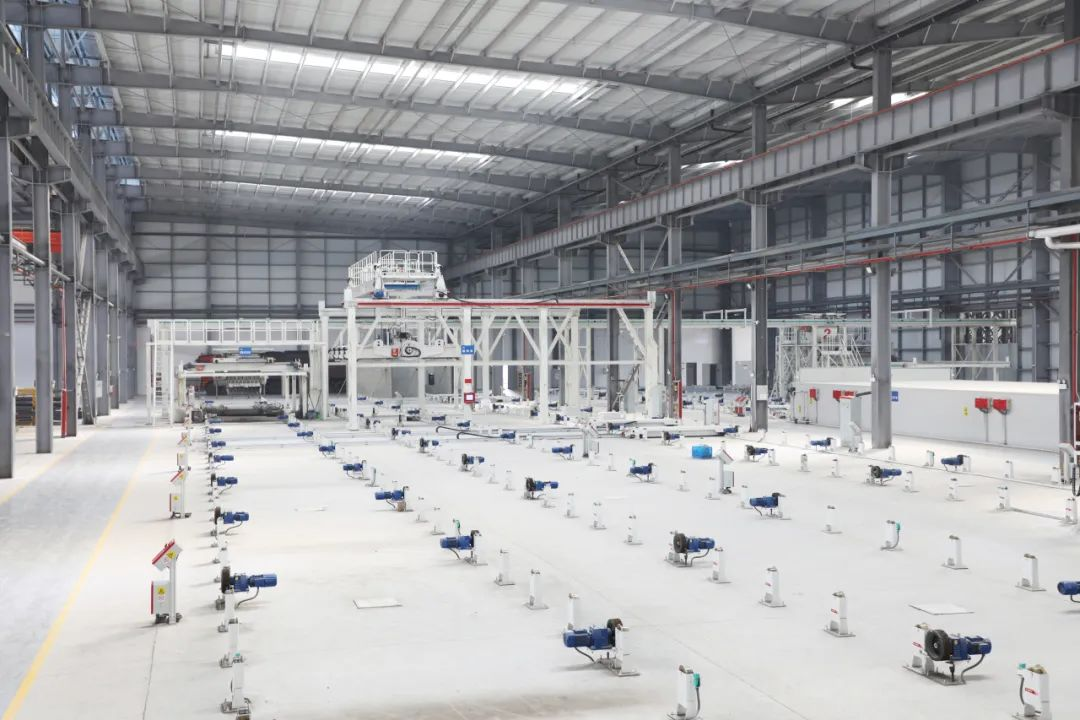 车间外的厂区,绿树环抱,瓦蓝的天空,钩了几丝初夏六月的轻云,空气中几乎看不到扬尘,不见轰隆的建造噪音,布谷鸟的叫时时传来。只见养护窑、拉毛机、布料机依次排开,各式机器设备全速启动,工人们在各自机台上,按照工序紧锣密鼓忙地生产。沙子、石子、水泥等原材料通过传送带自动送往搅拌楼,全过程都是在密闭空间内完成,基本消除了噪声和粉尘污染。一幅人与自然和谐交融的画面,跃然眼前。