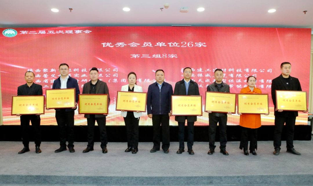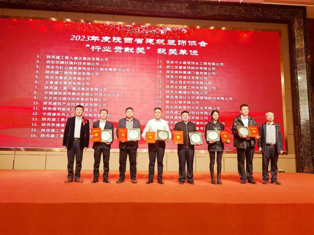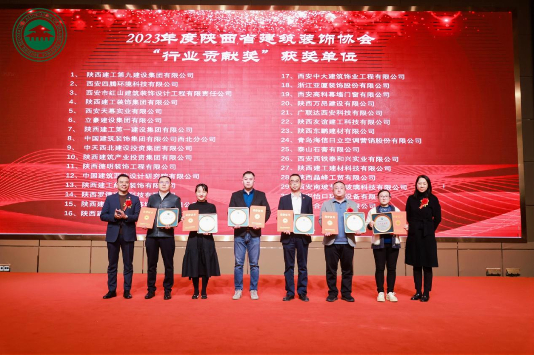 会议对建筑行业2023年度作出突出贡献的优秀建筑企业进行了表彰,陕西建筑产业投资集团及所属企业陕建新型建材公司、陕建建材科技公司、内蒙矿业公司分别荣获陕西省建筑节能协会优秀会员单位奖、科技创新企业奖,陕西省建筑装饰协会行业贡献奖、爱心企业奖等奖项,其中付超锋、佀伟、樊航、赵楚军、高凯荣获“优秀个人奖”。