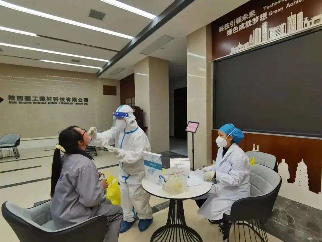陕建建材科技认真贯彻落实铜川市疫情防控工作部署,做好公司疫情防控工作,12月21日至22日,公司委托铜川矿务局中心医院对全体职工进行了集中核酸检测陕建建材科技组织做全员核酸检测。