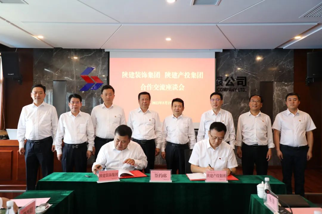 5月19日,陕建产投集团与陕建装饰集团在铜川签署战略合作协议。陕建产投集团董事长、党委副书记付超锋,陕建装饰集团董事长、党委副书记吕书全等领导鉴签,陕建产投集团总经理吴常明、陕建装饰集团总经理王伟代表双方签约。