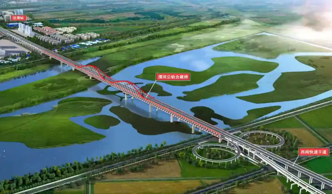 地铁10号线公轨合建桥位于灞渭生态滩站至陕汽路站(均为初步命名)区间,总长7.5公里,包含公轨合建段3.5公里,先后串联国际港务区渭河南岸、高陵区泾渭半岛及泾河北岸区域,涉及渭河特大桥、泾河大桥及泾渭半岛站(工程名“泾渭”)。它除了为通行于渭河两岸之间提供极大便利,亦将化身成渭河西安段最靓丽的一座标志性建筑。